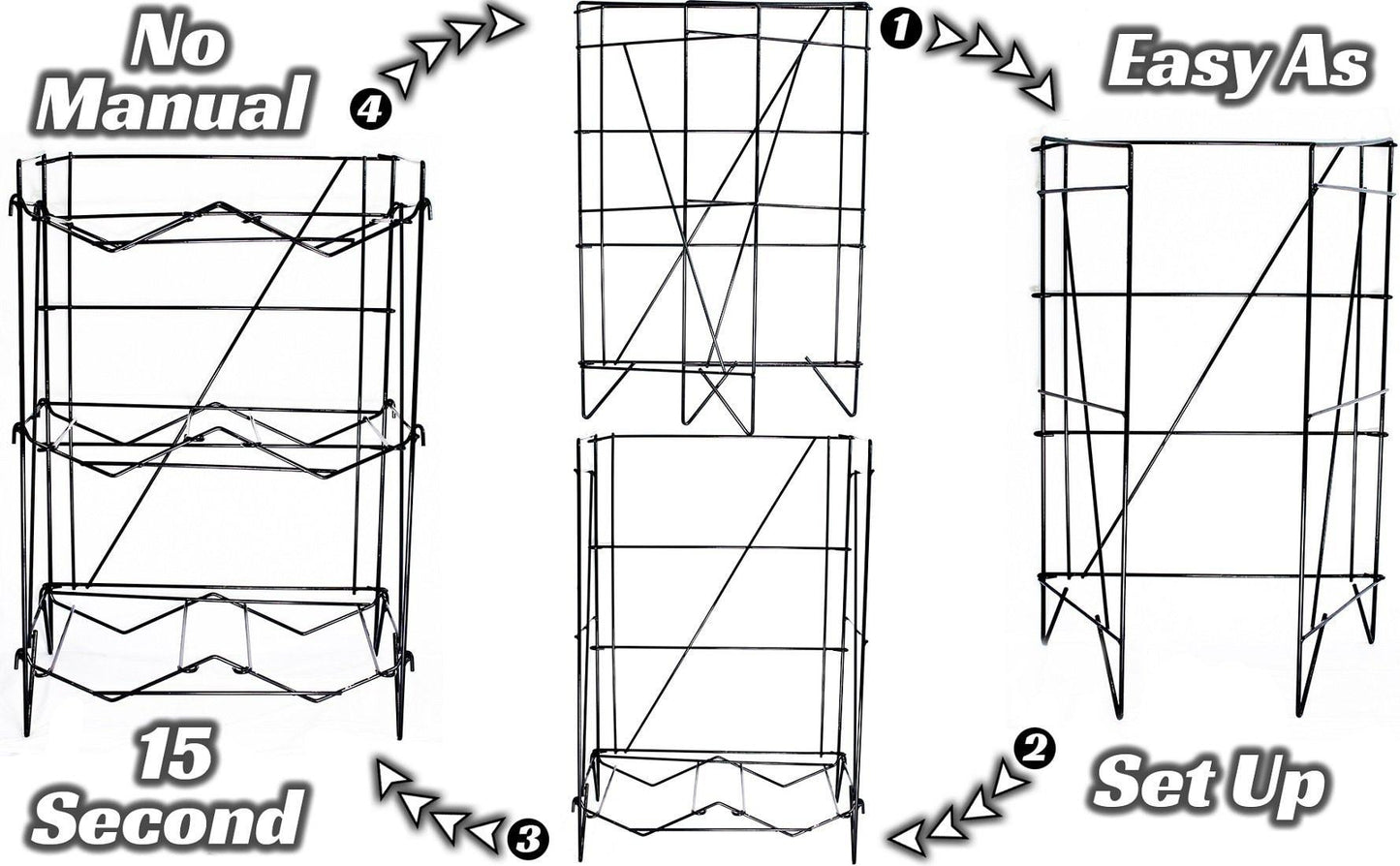- 💧 INSTANT SET UP: Takes 15 seconds to set up. That's it. Other rack stands force you to read long, boring user's manual which can take up to 30 minutes to set up, a waste of time! Need to move the shelves to another area? Just pick it up and move it. No need for a 2nd helper or take it apart.