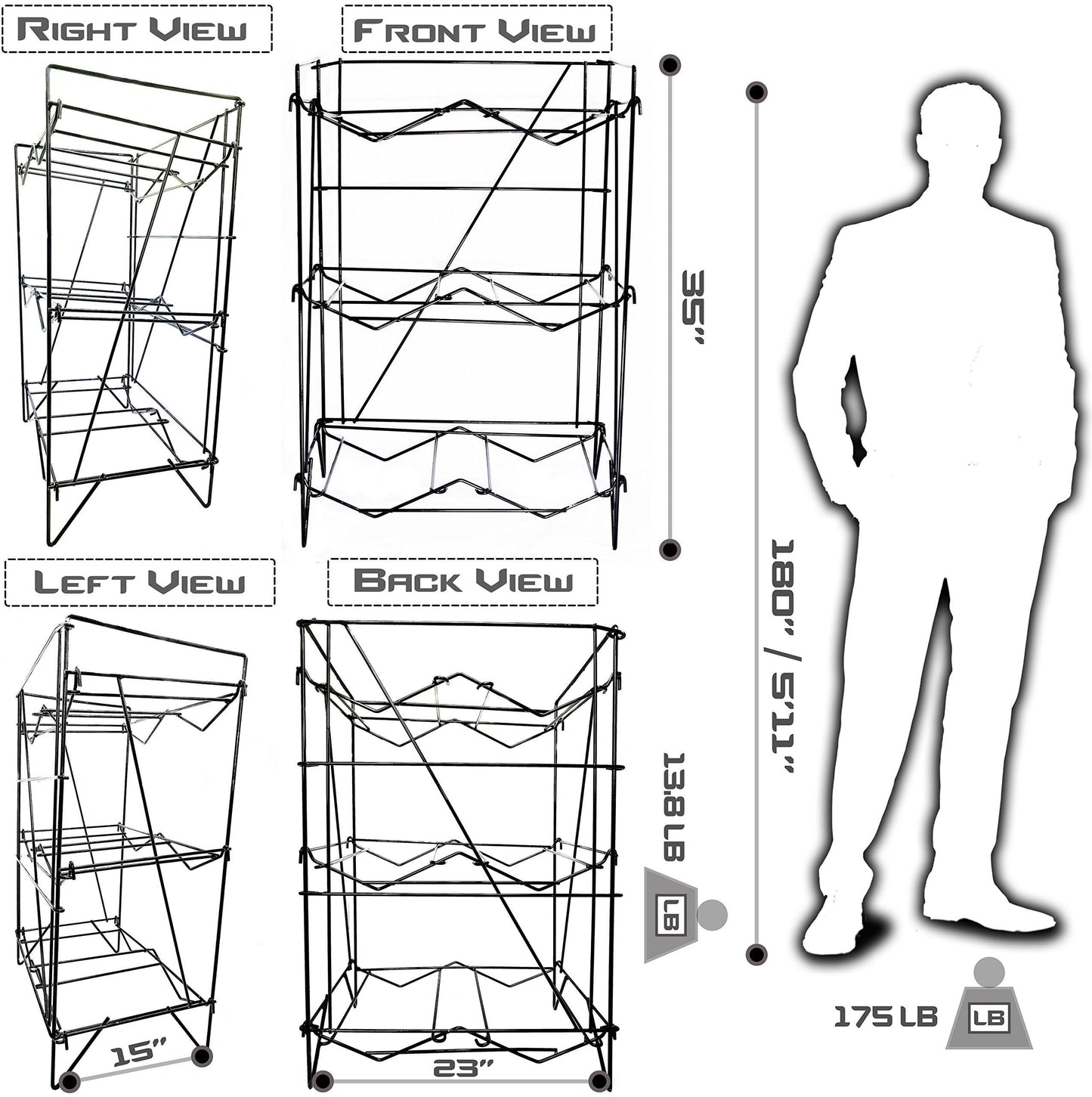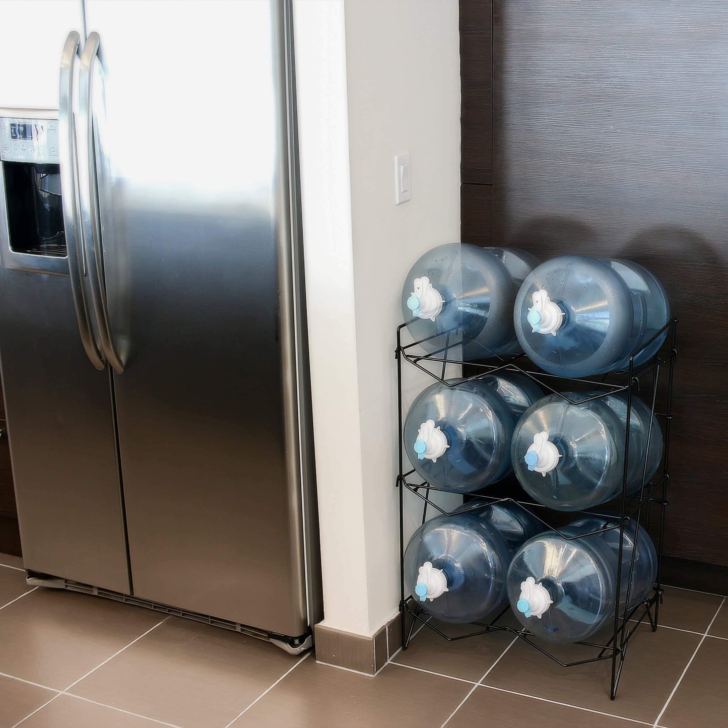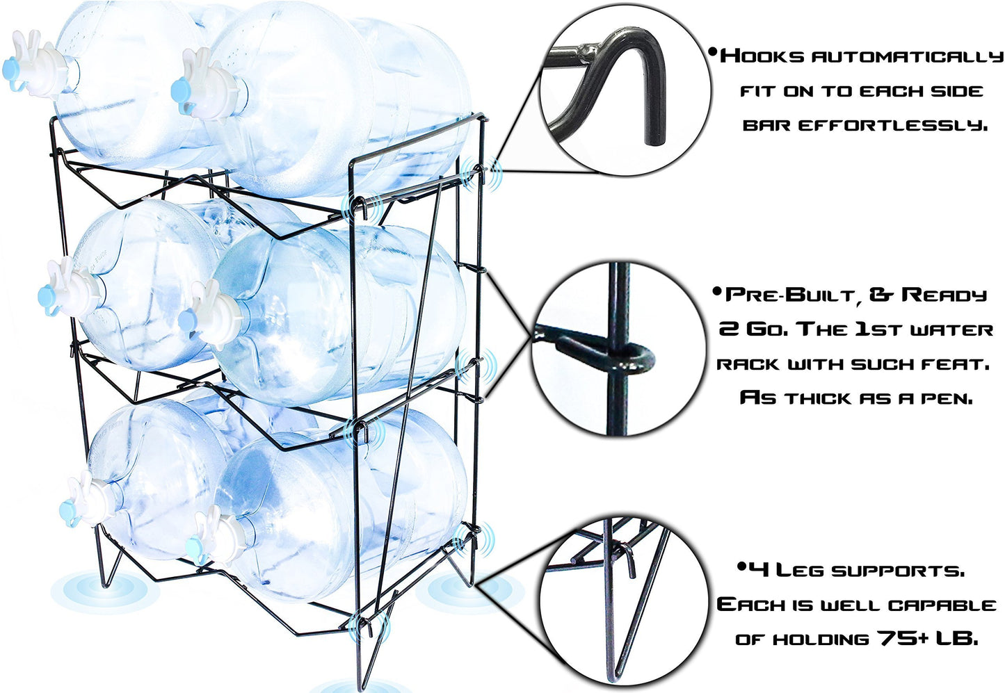 - 💧 INNOVATION: 34" H x 23" W x 15" L. That's it! Other brands are almost 5 to 6 feet tall. Yet, it can fit (6), 5 gallons bottles with no sweat. Just under 14 pounds, but can support 20+ times its own weight! Never worry about it bending or breaking, ever! Stainless Steel wire/rod is about the same thickness as a pen.