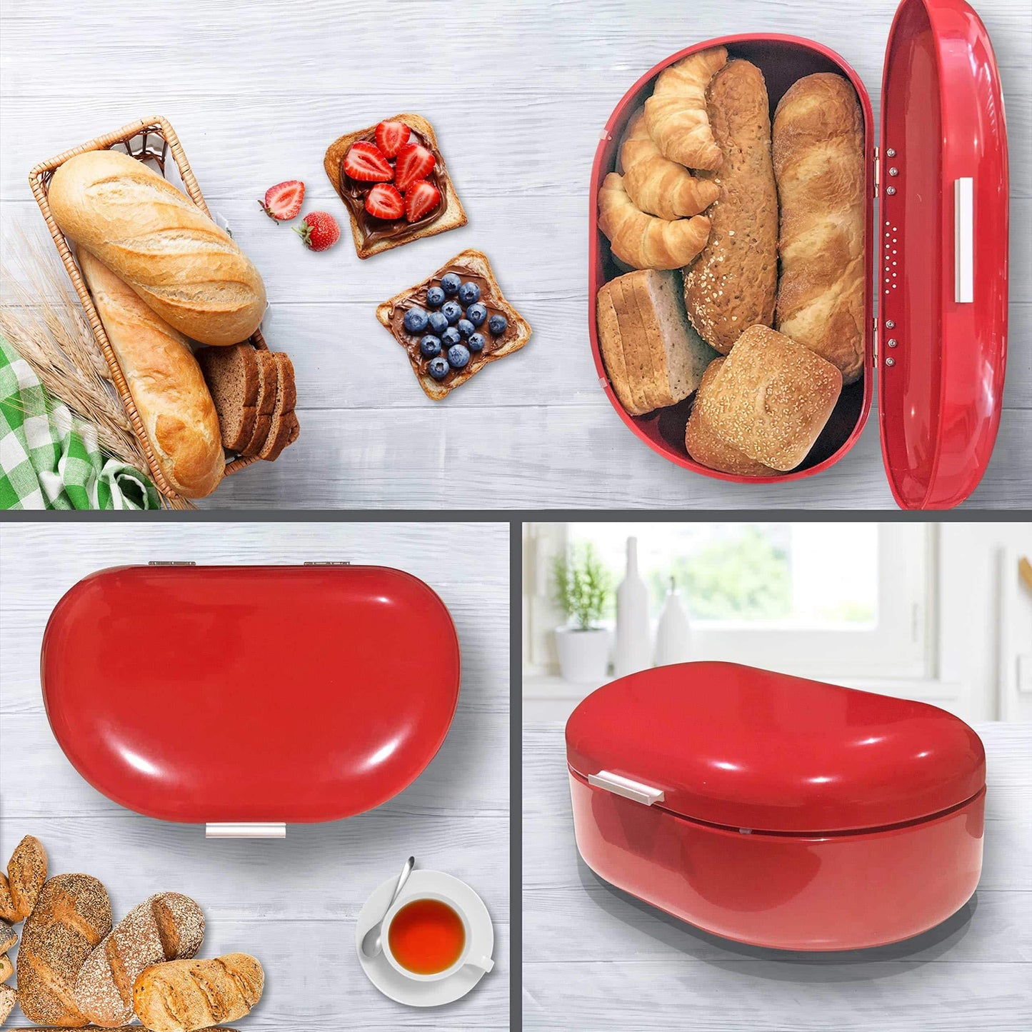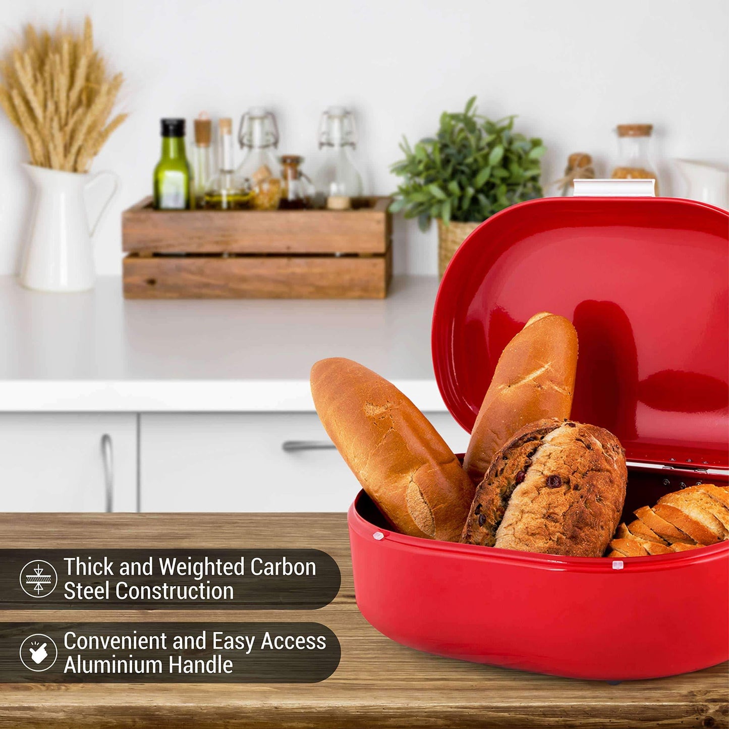 Bread Box Red, Carbon Steel, Large Capacity - Sturdy Metal Food Storage Containers and Bread Boxes for Kitchen Counters - Retro Countertop Breadbox for loaves | 15.7 x 10.8 x 7 inches