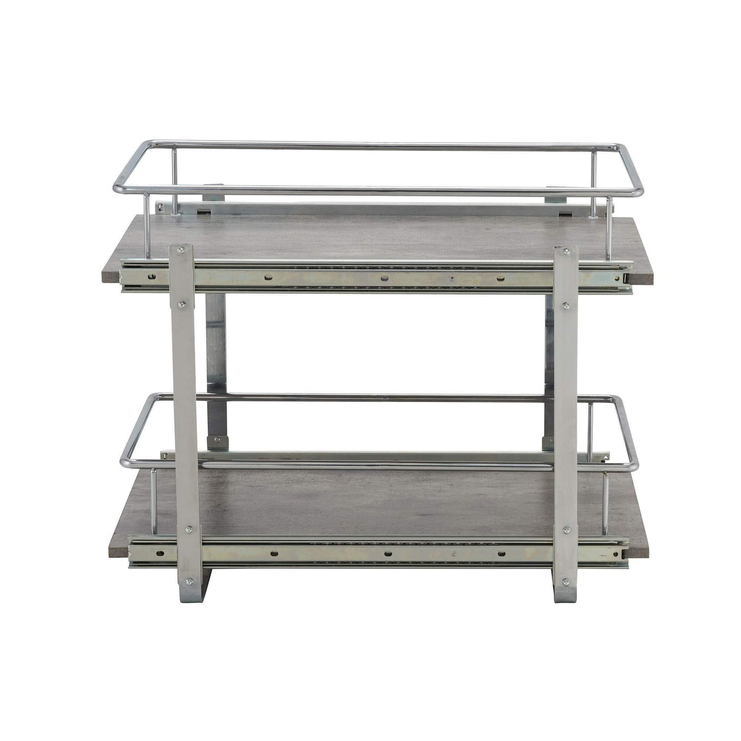 Details: Command all the space in your cabinets with these sliding cabinet organizer shelves. These pull-out shelves make things in the back of your cabinets easy to access. Gone are the days of bending, kneeling or craning to reach things in the back corners of the cabinets. Each shelf can move independently of the other and glides easily to extend fully outside of your cabinet. The organizers are mounted on your cabinets to ensure they stay put even when the shelves are fully extended. This cabinet organizer is made of heavy duty steel chrome wire and sleek faux concrete, elevating the look of any kitchen or bathroom. The concrete shelves are attractive and reduce the risk of items falling through or getting caught on traditional wire shelves and baskets. Whether you use this sliding cabinet organizer to store small appliances, food, pots and pans, cleaning supplies, toiletries or anything else, this organizer will upgrade any cabinet situation. These shelves come ready to install with hardware included.