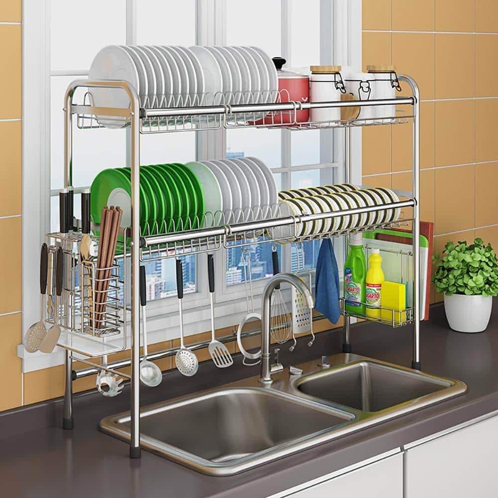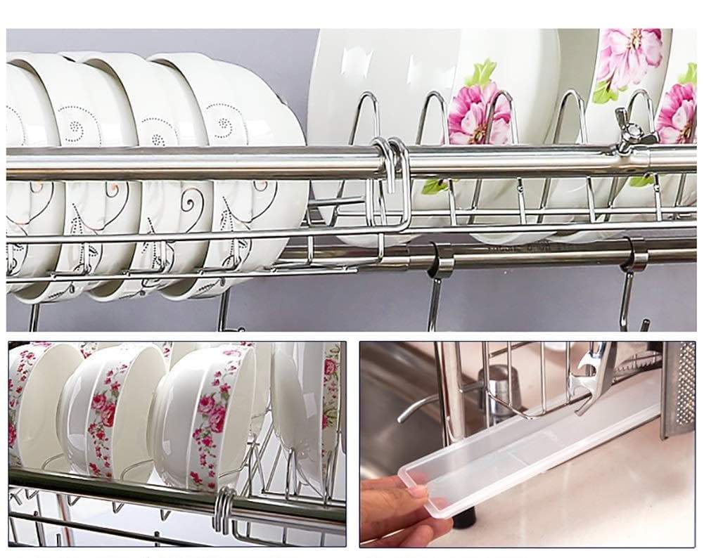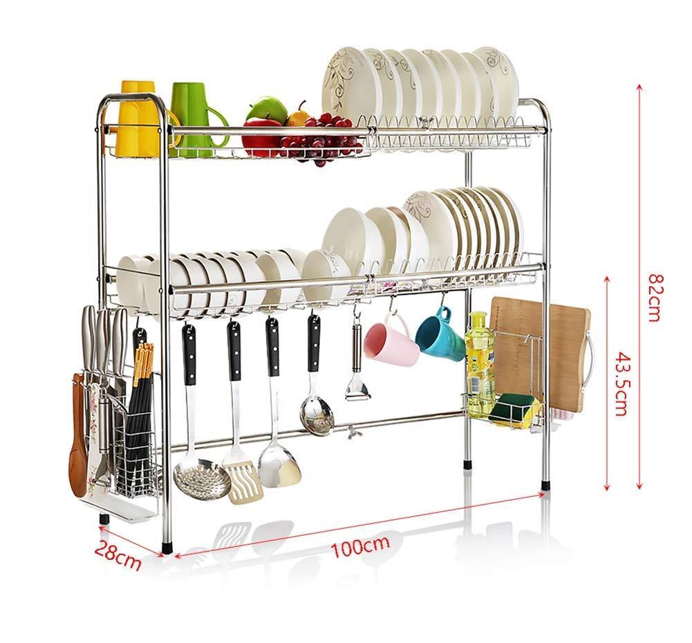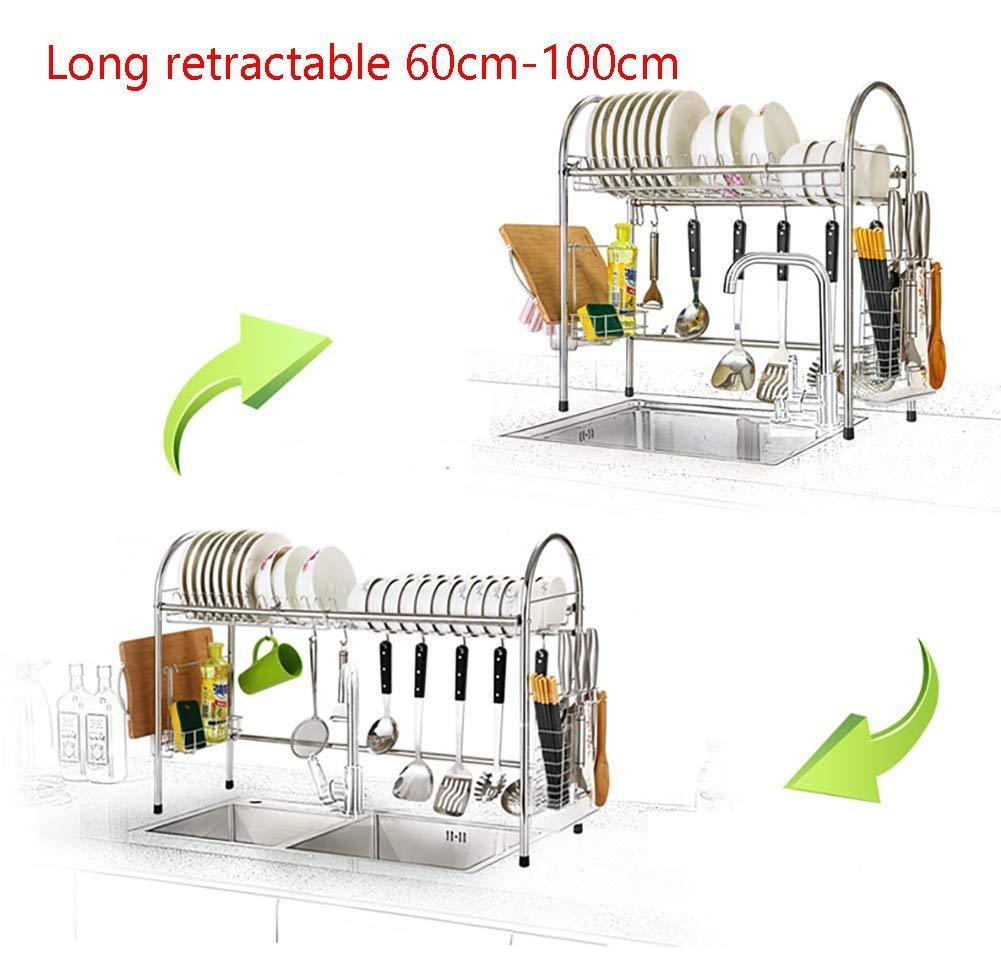 MAGO Retractable 304 Stainless Steel Dish Rack Drain Rack Sink Universal Pool Frame Kitchen Shelf Multi-Function Kitchen Storage (Size : 100cm x 28cm x 82cm)