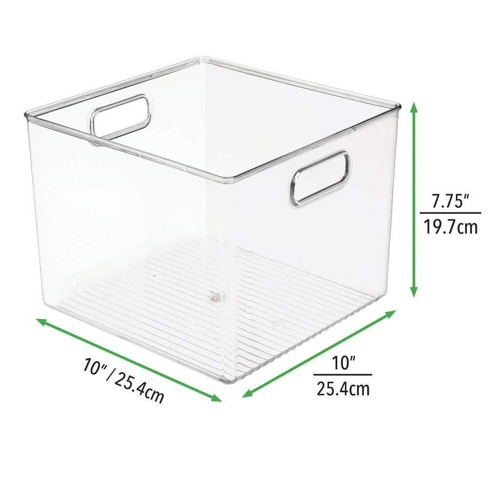 mDesign Plastic Food Storage Container Bin with Handles - for Kitchen, Pantry, Cabinet, Fridge/Freezer - Large Organizer for Snacks, Produce, Vegetables, Pasta - BPA Free, 10" Square, 8 Pack - Clear