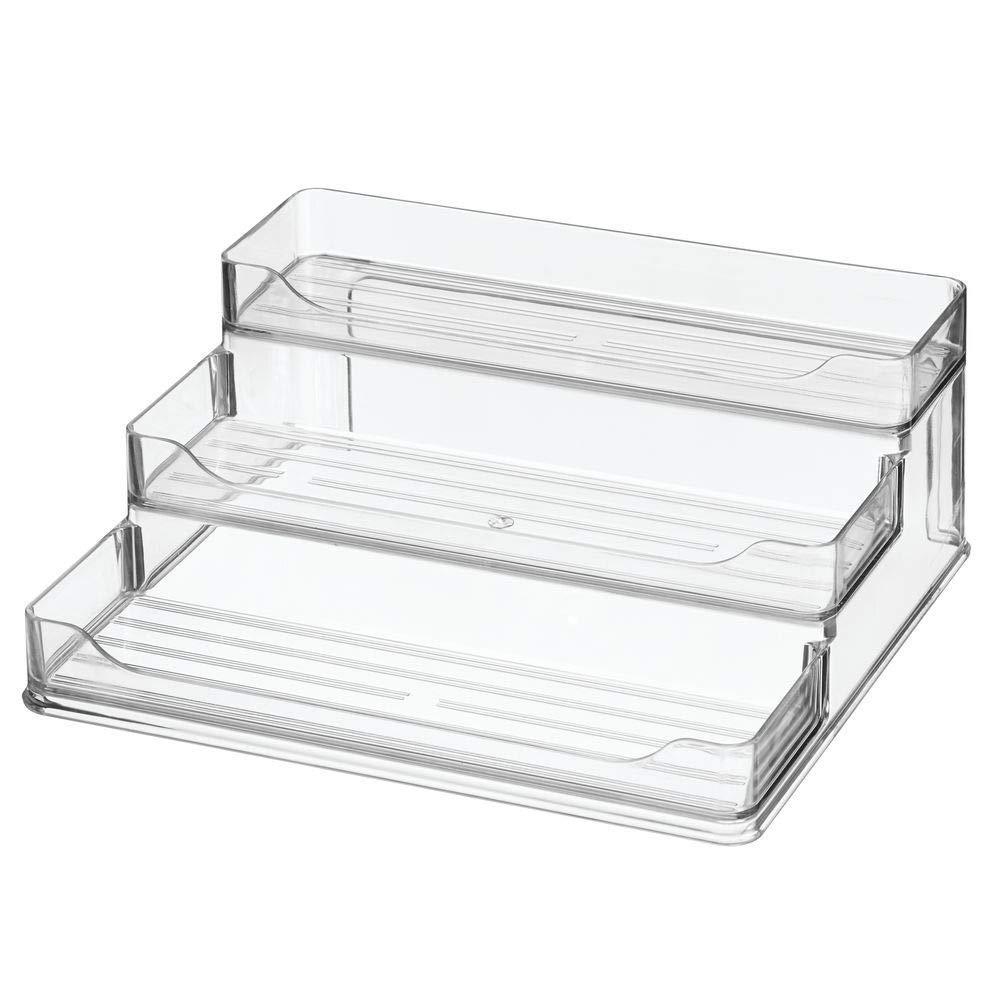 mDesign Plastic Spice and Food Kitchen Cabinet Pantry Shelf Organizer - 3 Tier Storage - Modern Compact Caddy Rack - Holds Spices/Herb Bottles, Jars - for Shelves, Cupboards, Refrigerator - Clear