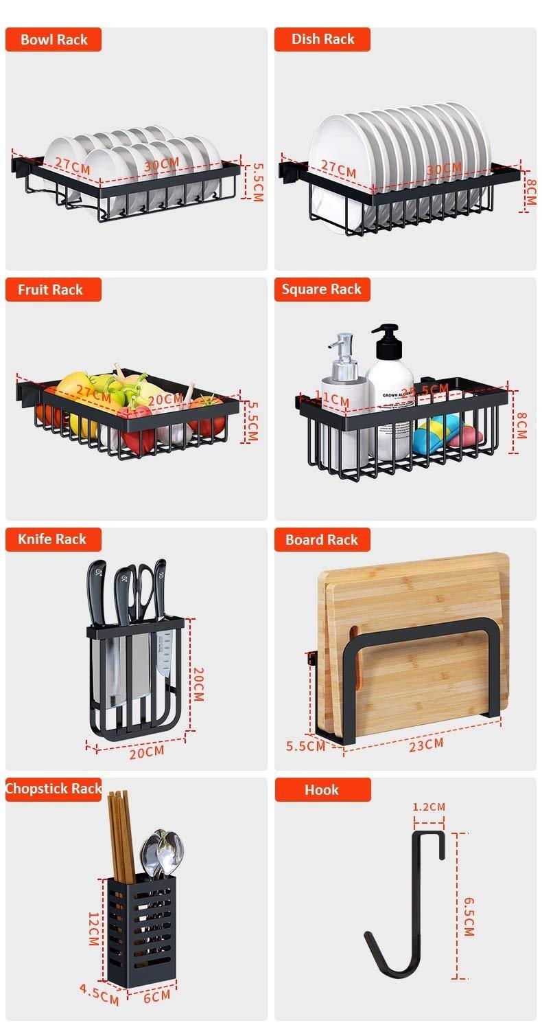 - 7 INTERCHANGEABLE CADDIES let you customize your Auramor Sink Rack to your dish-drying and kitchen storage needs. You receive bowl and dinner plate racks; a produce rack; cutlery and knife holders; a miscellaneous square rack; and a cutting board rack. You also receive hooks for hanging dish cloths and larger cooking utensils.
