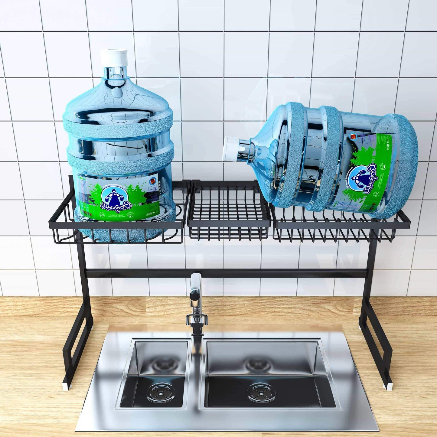 - PREMIUM STAINLESS STEEL gives our over sink rack unparalleled durability, with a black powder coating making it impervious to rust or corrosion. Engineered for maximum stability and with 4 powerful suction cups on the back, it won't topple over when loaded.