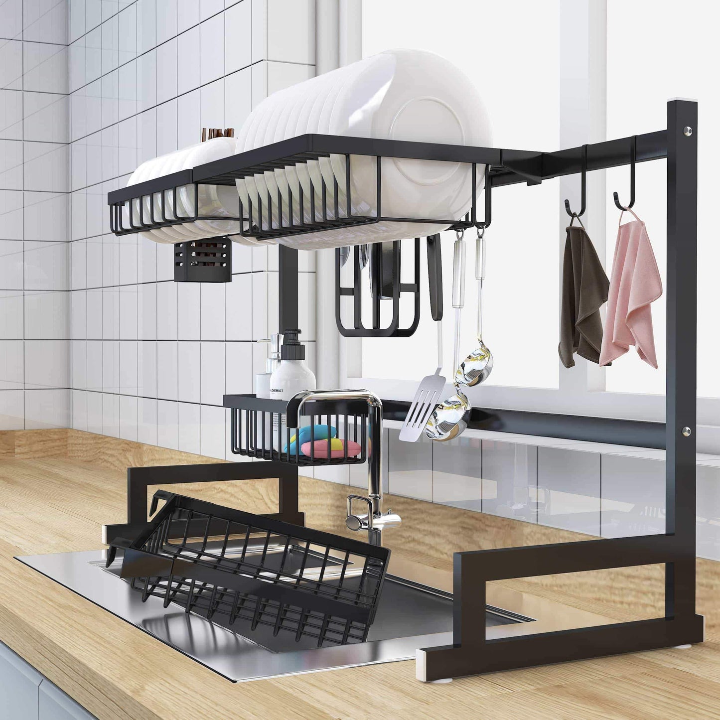 - MAXIMIZE KITCHEN SPACE with an over the sink dish drying rack by Auramor. This efficient kitchen dish rack makes the most of that unused space over your sink, allowing you to dry plates, cups, utensils and bowls without using your open countertop.