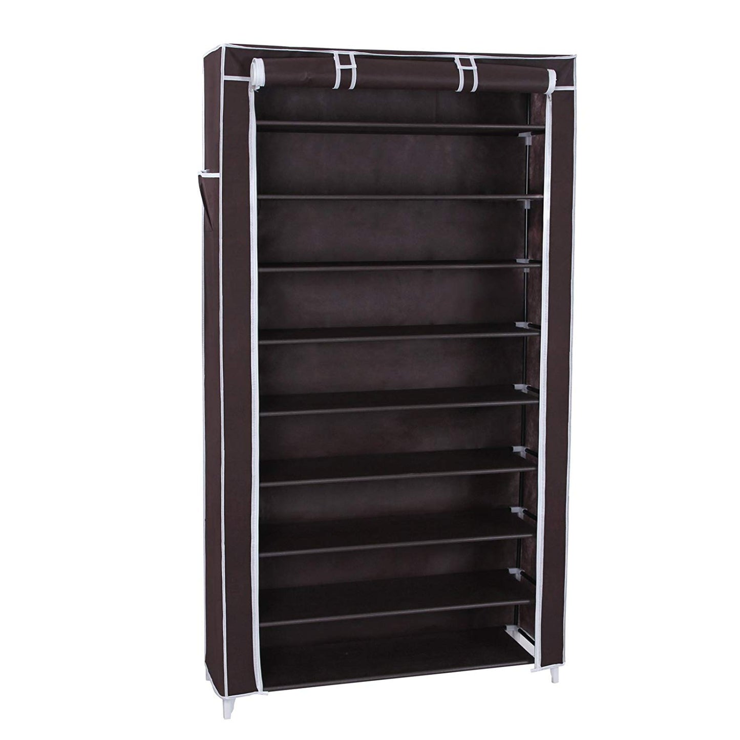 SONGMICS 10 Tiers Shoe Rack with Dustproof Cover Closet Shoe Storage Cabinet Organizer Dark Brown URXJ36Z