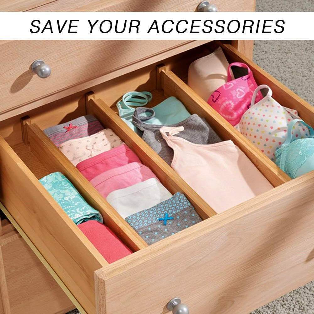 - ❤ EASY TO INSTALL: Bamboo drawer organizer dresser has the spring structure and padded ends,easy to install and remove,no tools required.