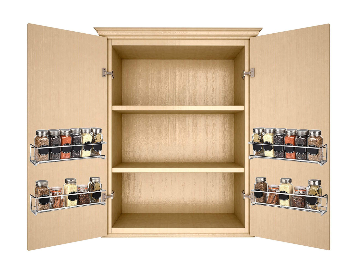 Spice Rack Organizer for Cabinet, Door Mount, or Wall Mounted - Set of 4 Chrome Tiered Hanging Shelf for Spice Jars - Storage in Cupboard, Kitchen or Pantry - Display bottles on shelves, in cabinets